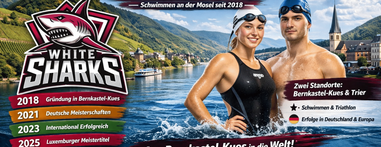 Am 13. Dezember 2018 wurde in Bernkastel-Kues ein Verein gegründet, der die Region für immer verändern sollte. Die White Sharks, auf Deutsch Weiße Haie, entstanden aus dem Wunsch heraus, das Schwimmen in der Großregion Mosel auf ein neues Niveau zu heben. Ein kleines Team engagierter Schwimmbegeisterter, eine klare Vision und das Moselbad als erste Heimat.